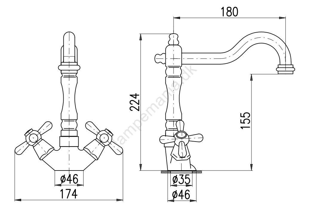 • Stående håndvaskarmatur med drejelig tud og CLICK-CLACK bundventil 5/4".