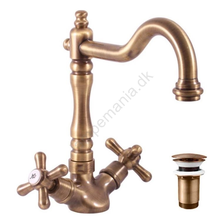 RAV Slezák MK121.0/8SM - Køkken-/håndvaskarmatur + bundventil MORAVA RETRO 22,4 cm i antik messing