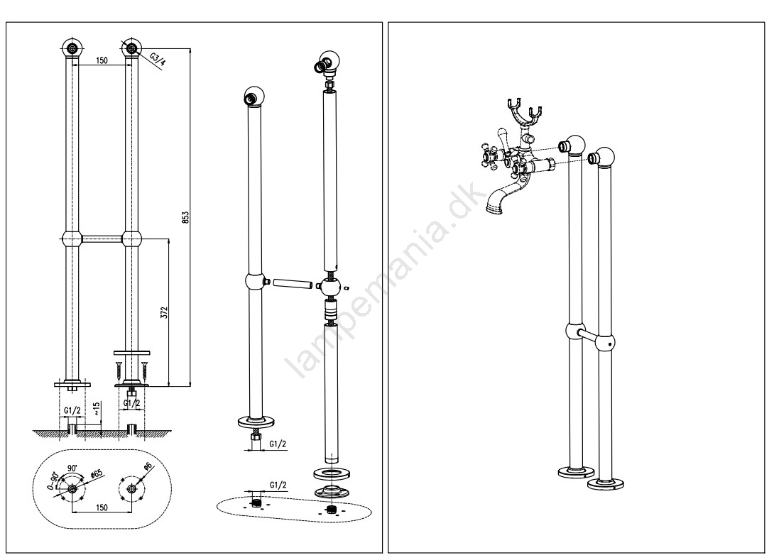 • Monteringsmateriale til fastgørelse af fødderne i gulvet medfølger ikke.