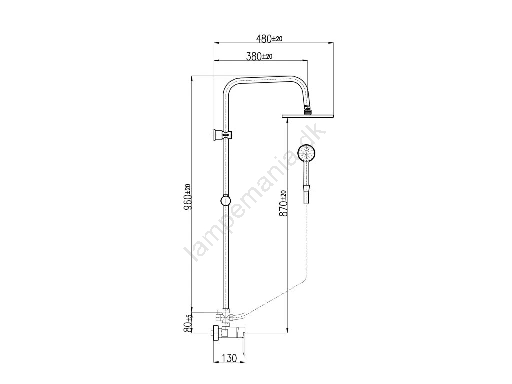 • Sættet indeholder: brusebatteri, plast håndbruser (Ø 103 mm), plast hovedbruser (Ø 230 mm), plast bruseslange (1500 mm), bruserstang.
