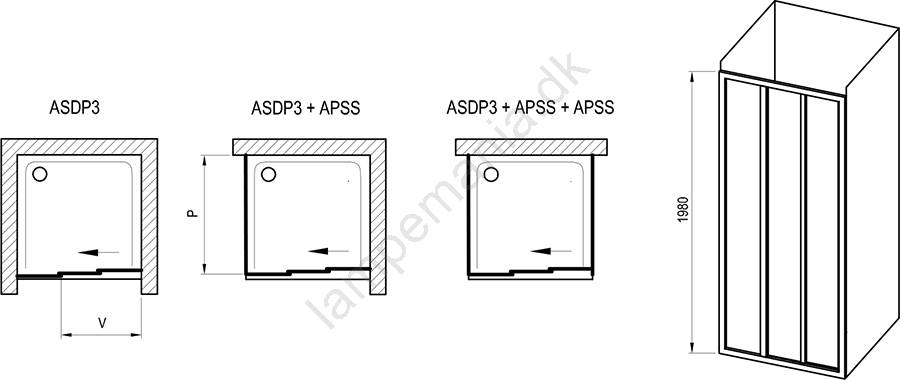 • Ved at dreje dørene kan de monteres til både højre- og venstreskydning.
