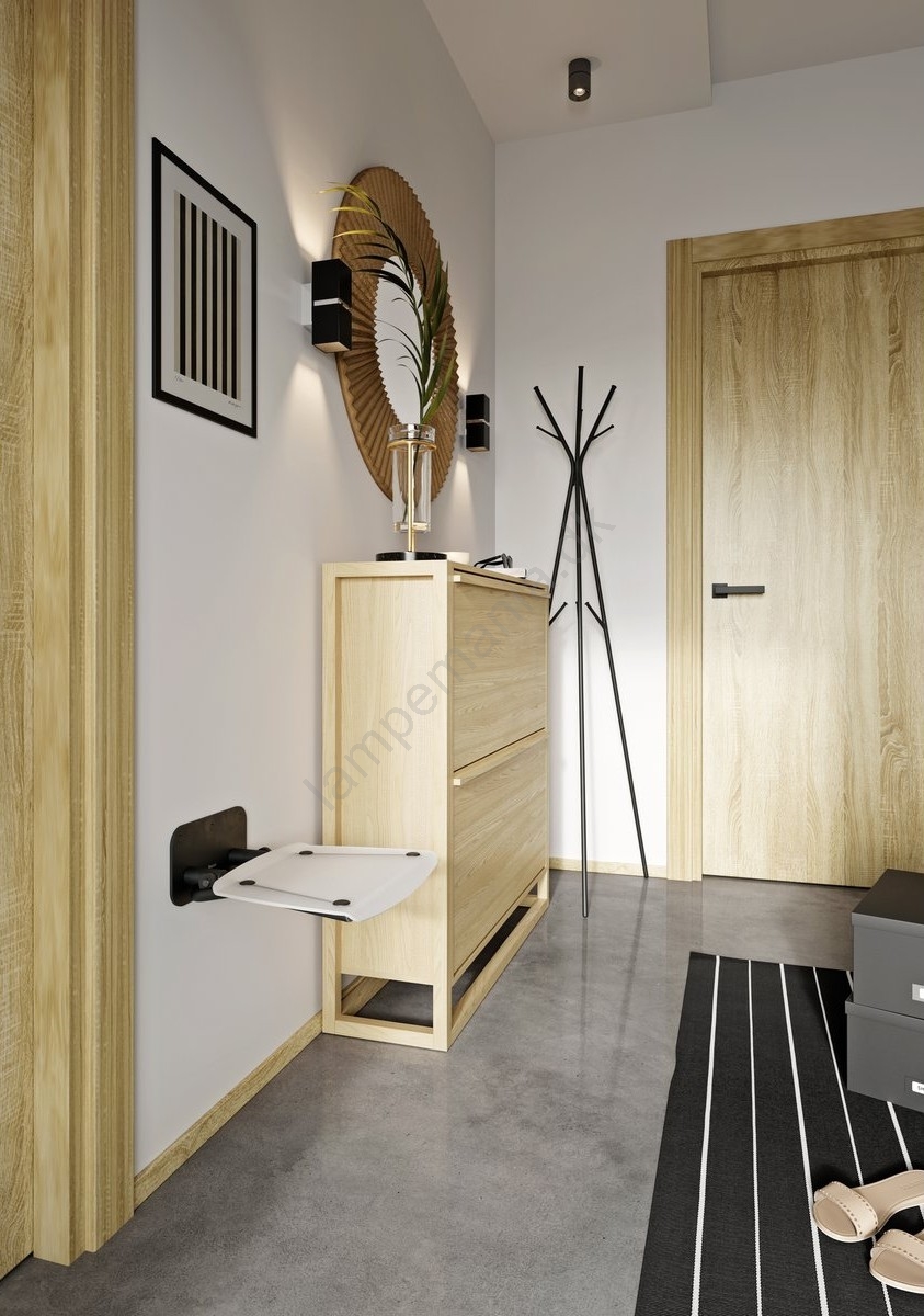 • Sædet kan let klappes op mod væggen, hvilket sparer plads og bevarer bevægelsesfriheden i bruseområdet.