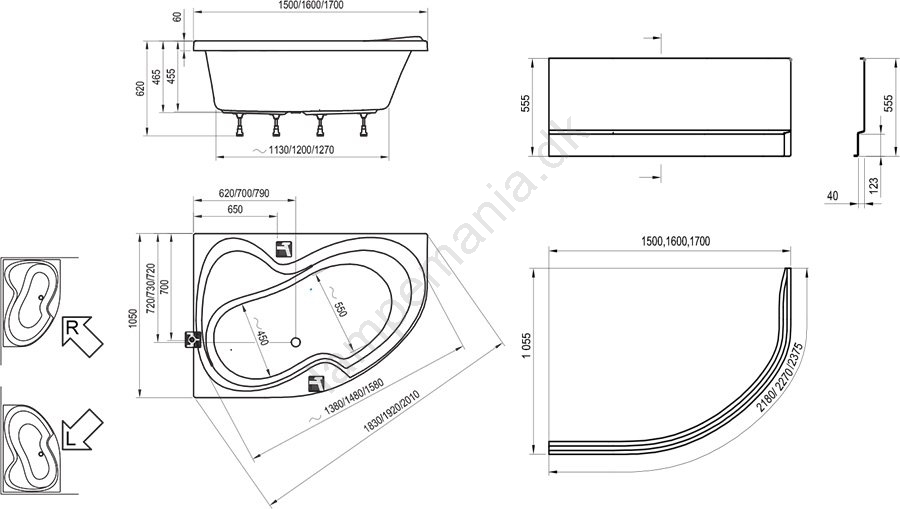 Asymmetriske badekar, Badekar, Badeværelse, Hjørnebadekar, Mærker, Ravak