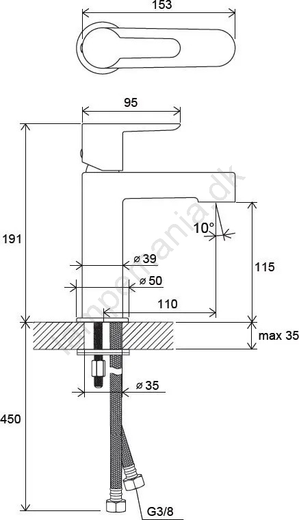 • Puri bordmonteret håndvaskarmatur i blank krom har en højde på 190 mm.