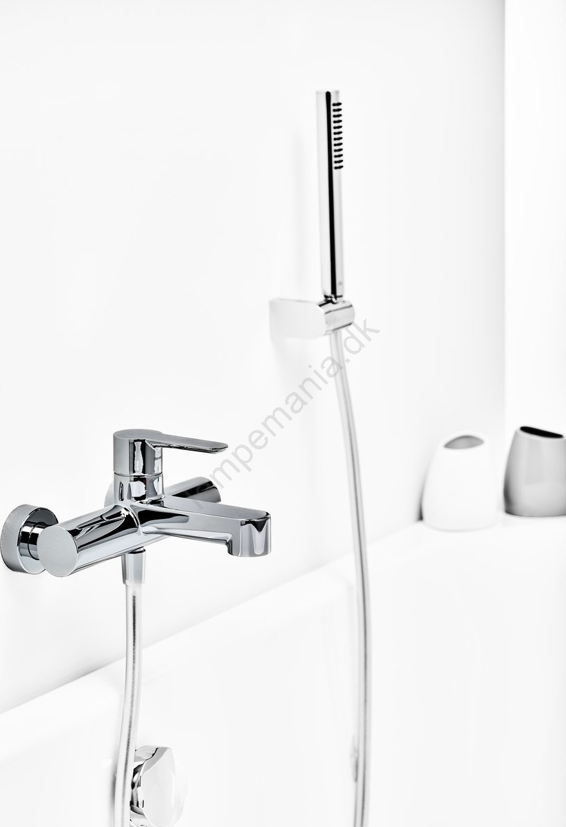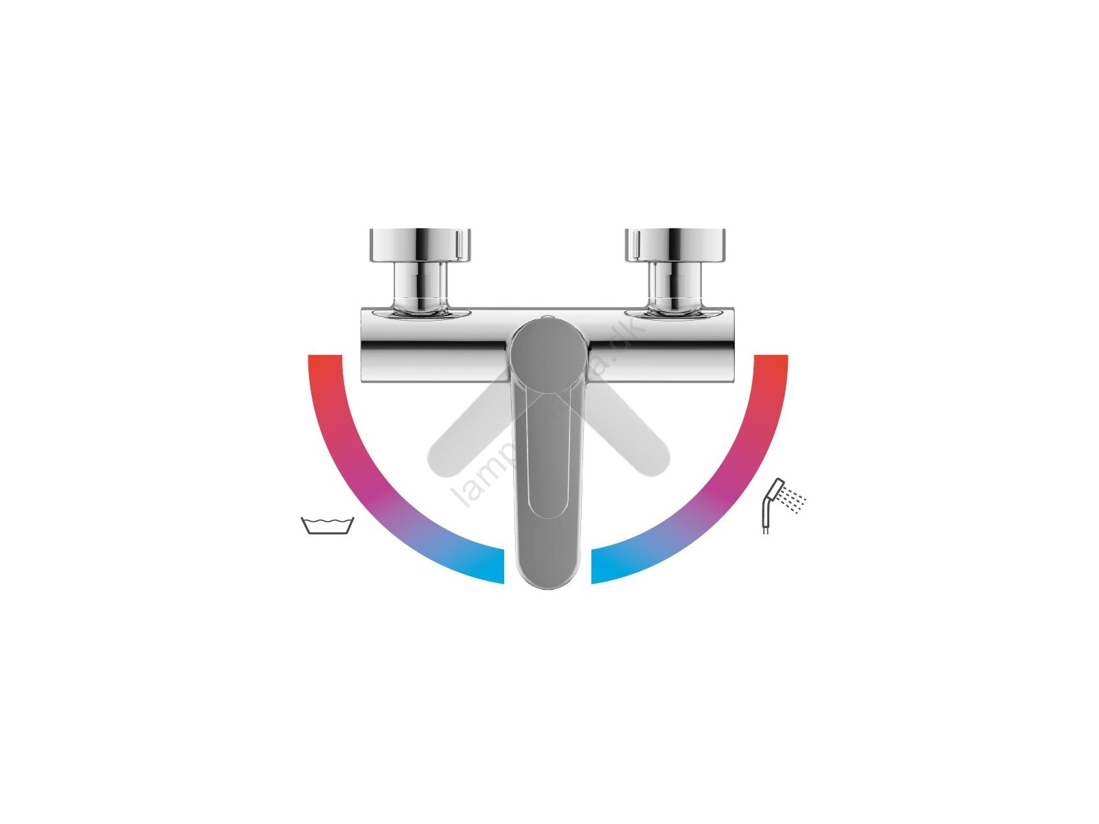 • Ved at bevæge grebet til højre (bruser) eller til venstre (kar) reguleres kun vandets temperatur, mens gennemstrømningen forbliver stabil.