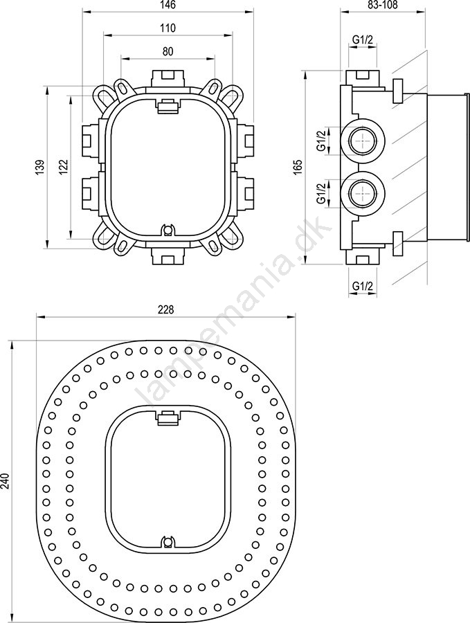 • Kan installeres i gipsvæg eller i klassisk muret skillevæg.