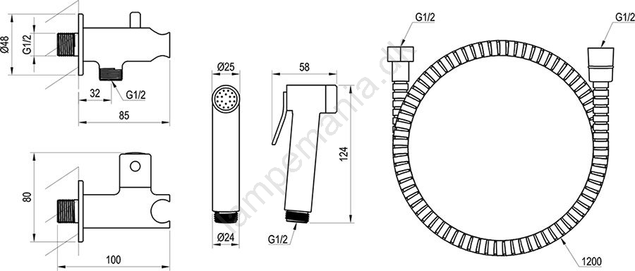 Ravak X070166 - Håndholdt bidetbruser til indbygget installation i blank krom