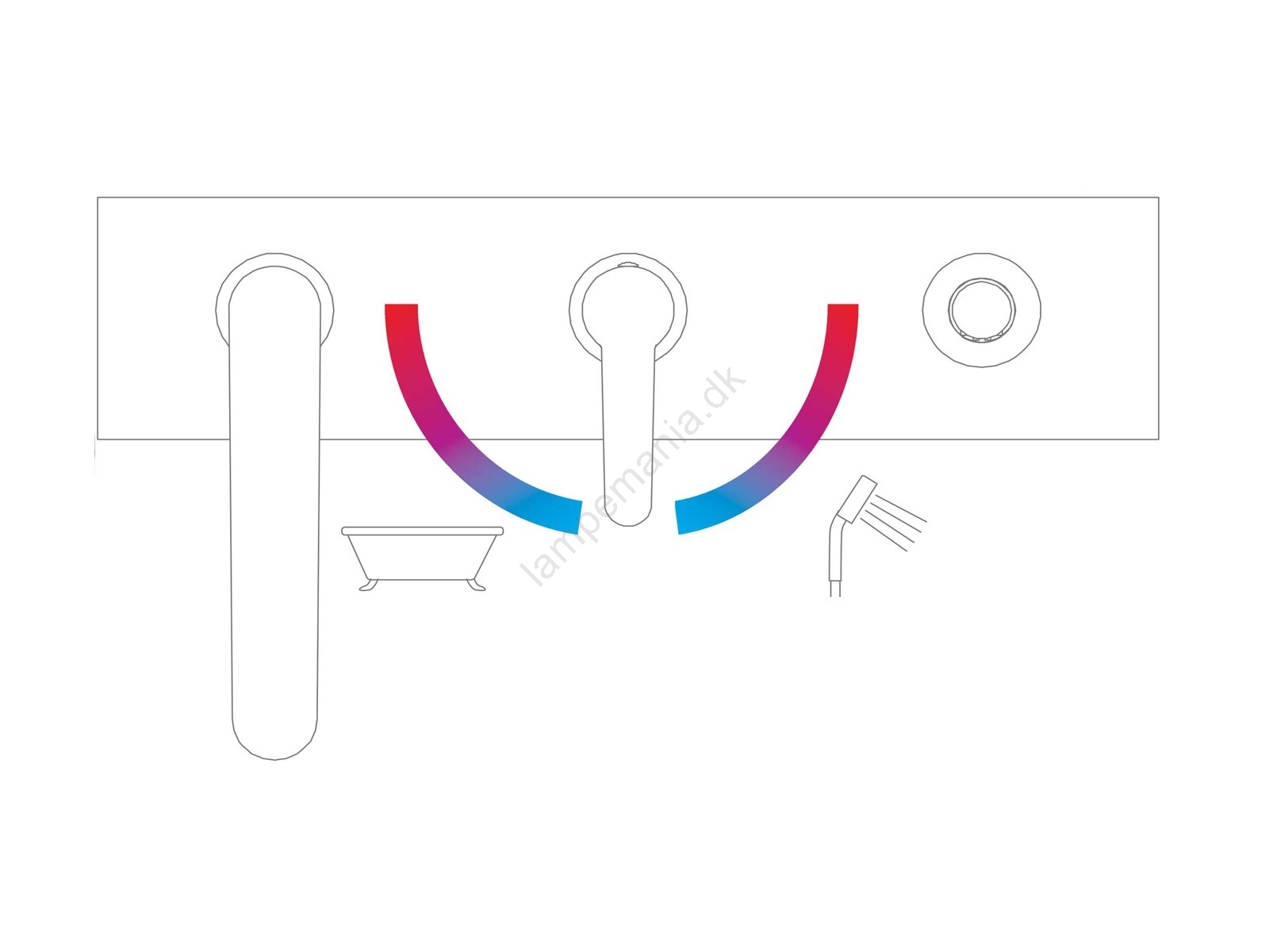 • Når grebet bevæges til højre (bruser) eller venstre (badekar), reguleres kun vandets temperatur – gennemstrømningen forbliver konstant.