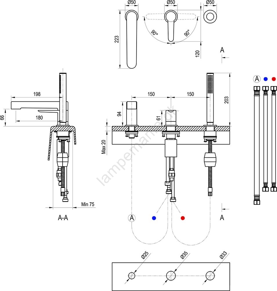 • Armaturet leveres med en udtrækbar bruser og en 175 cm lang rustfri metalslange med enkeltlås.