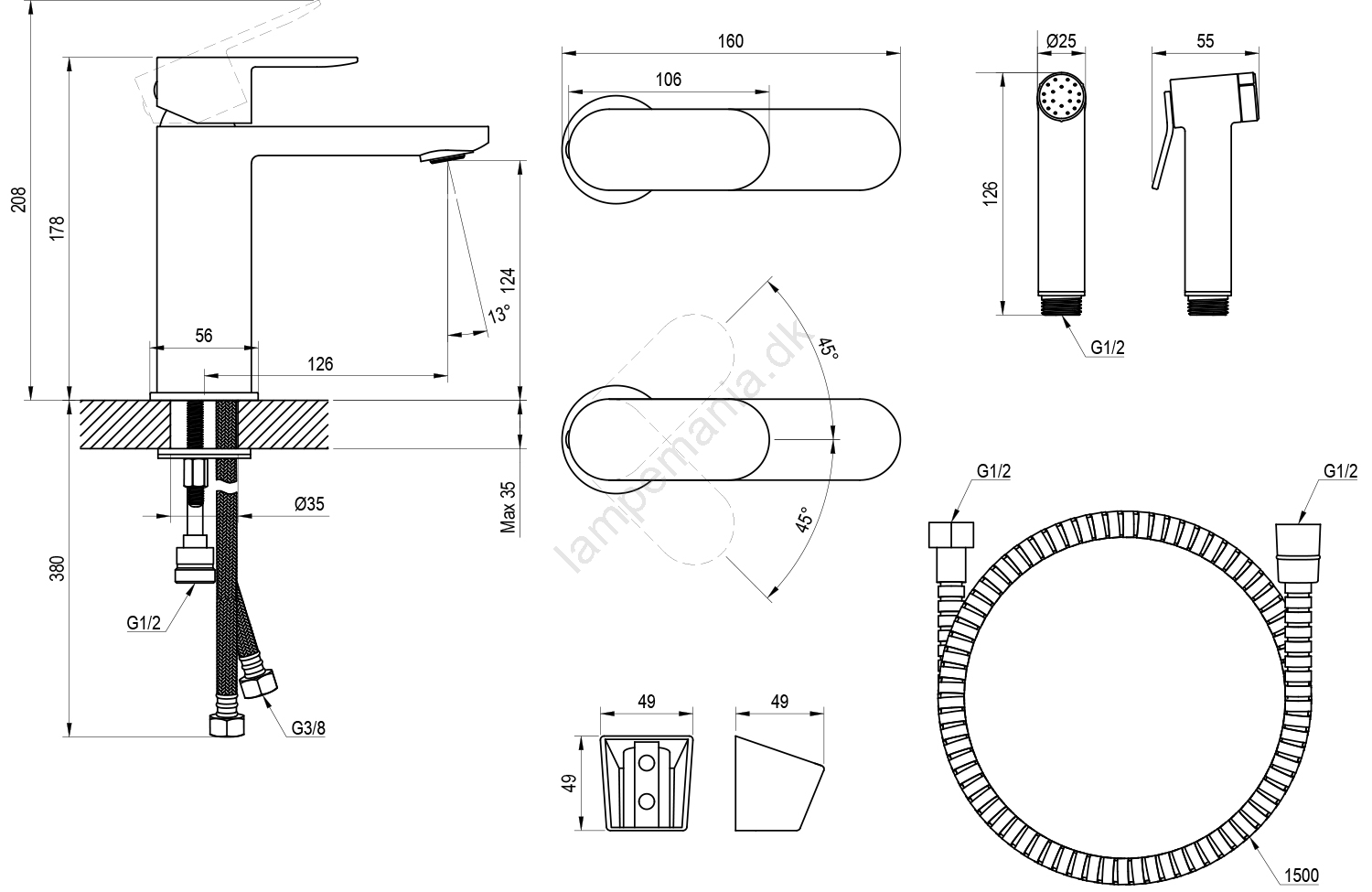 • Armaturet leveres med en håndholdt bidetbruser med tilbageslagsventil, som muliggør komfortabel personlig hygiejne uden behov for et separat bidet.
