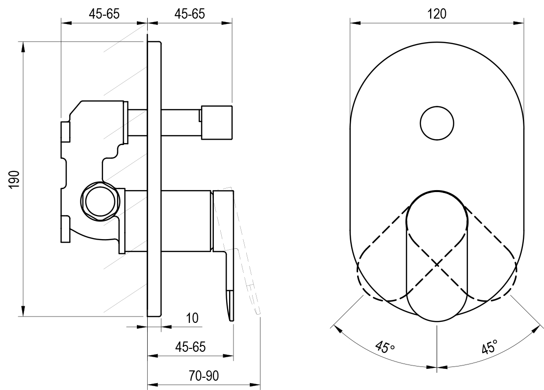 • Den tovejs udførelse med automatisk omskifter gør det nemt at skifte mellem to udgange, typisk mellem påfyldning af badekar og bruser eller mellem fast brusehoved og håndbruser.