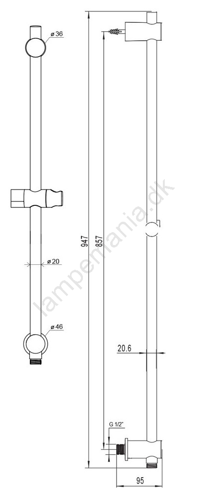 • Indbygningsvandudtag direkte i stangen med udvendigt G1/2" gevind.