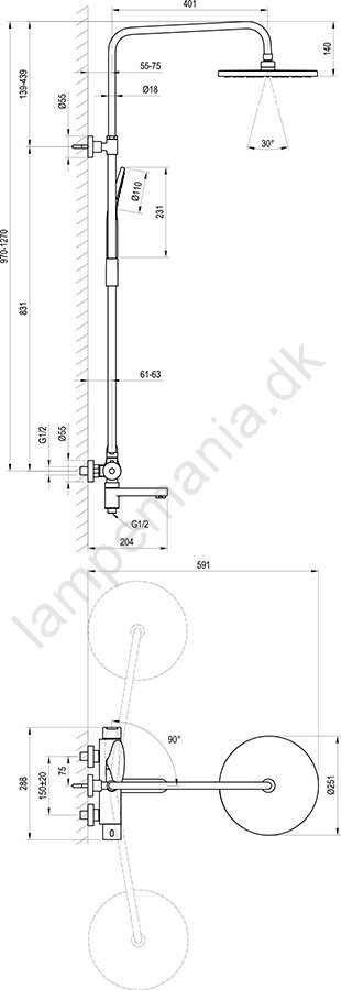 • Brusesøjlen er ikke egnet til montering ved badekar (på grund af hovedbruserens højde).