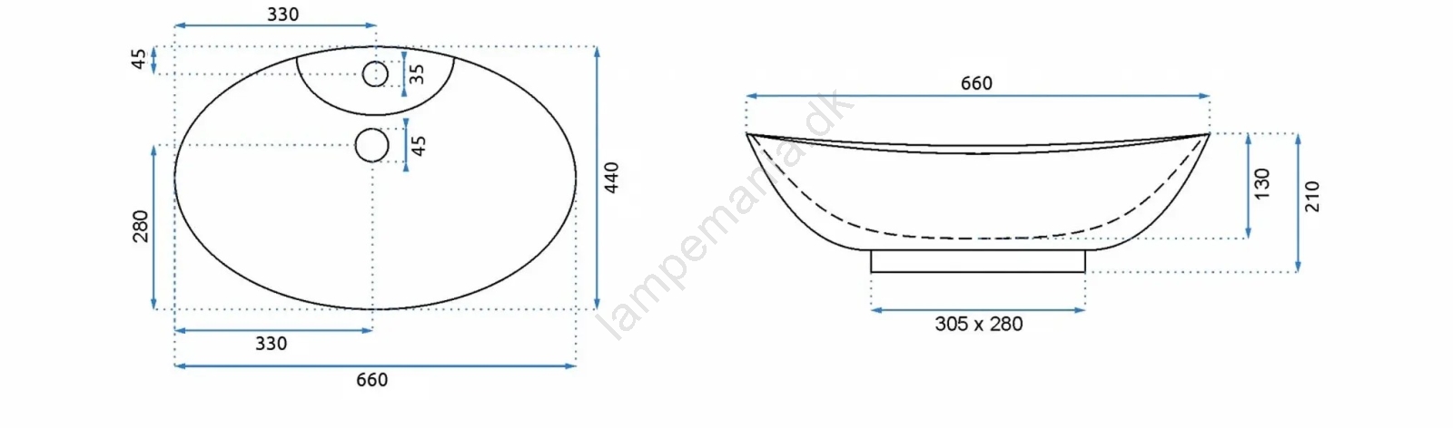 • Håndvaskarmatur og bundventil medfølger ikke.