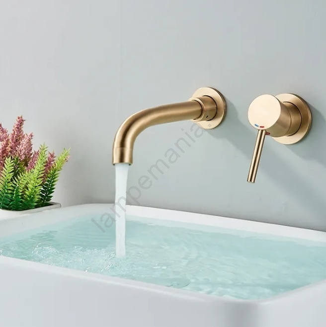 • Vægmonteret indbygget blandingsbatteri i elegant guldfinish.