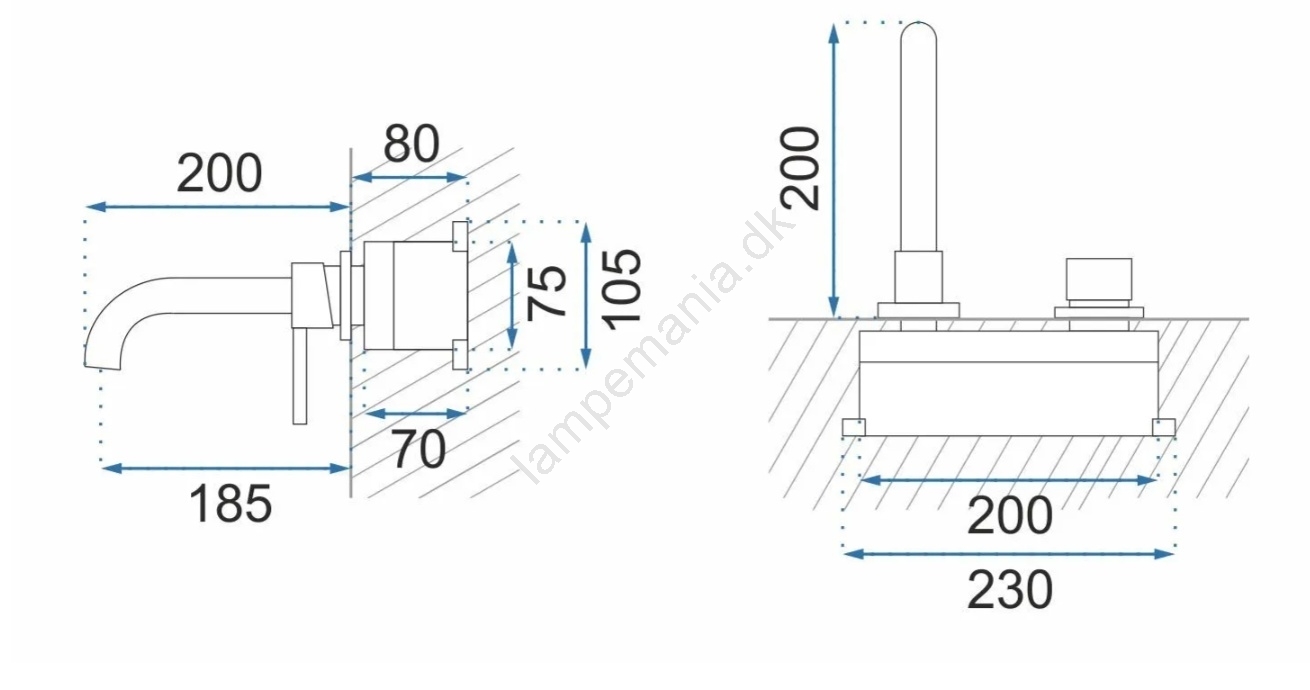 • Vægmontering via BOX-system – plastmodul med indvendige messingkomponenter.