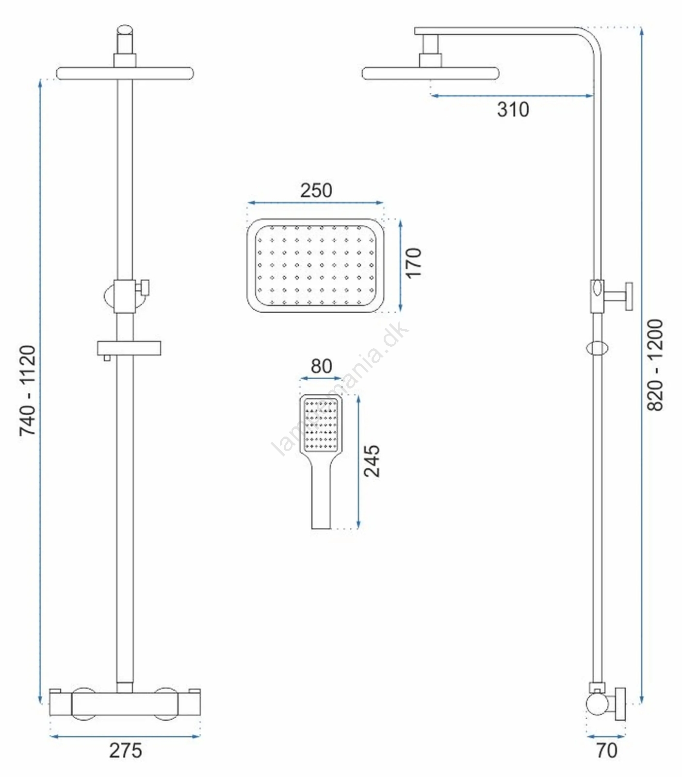 REA-P7100 - Brusesæt med termostatisk armatur TOM, skinnende krom