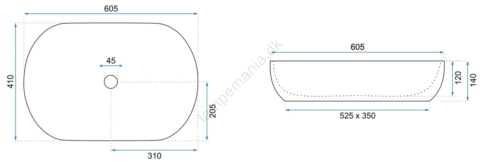 • REA-U0024 - Bordpladevask CLEO 41x60,5 cm keramisk/blank hvid
