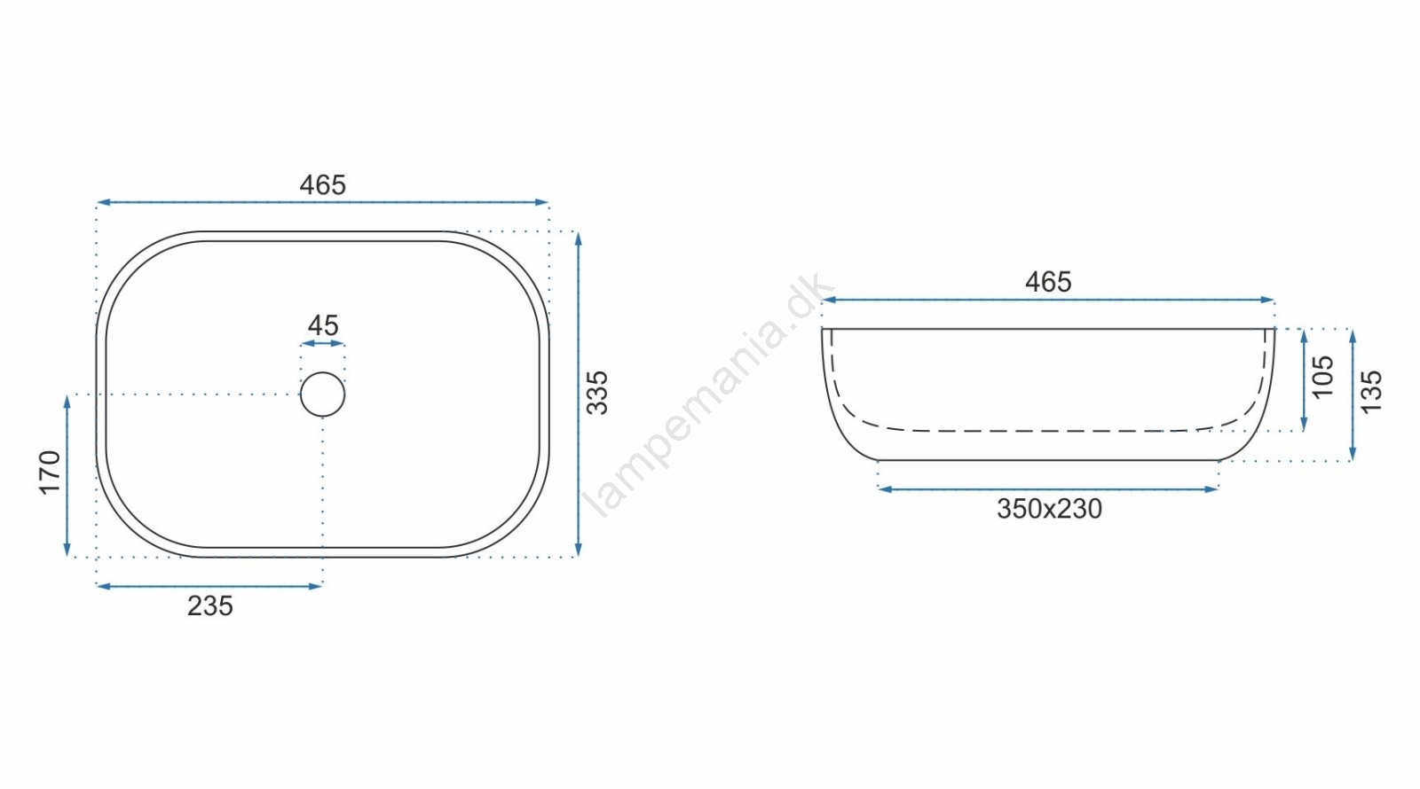 • REA-U6521 - Vask til bordplade BELINDA SLIM 33x46,5 cm keramik/højglans hvid