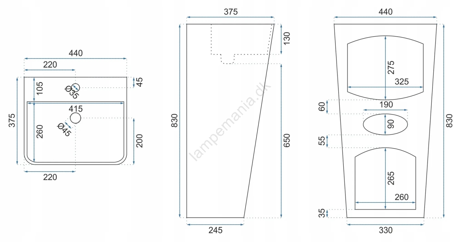 • Håndvasken er beregnet til gulvmontering.