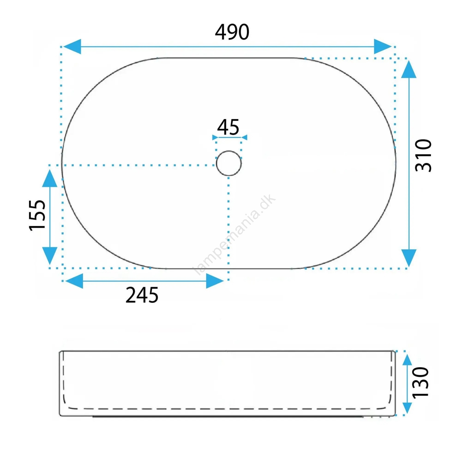 • Håndvaskarmatur og afløb medfølger ikke.