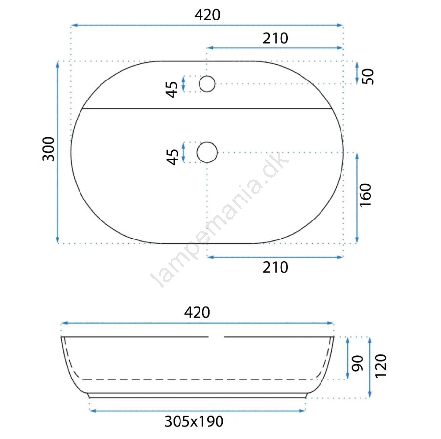 REA-U6617 - Håndvask til bordplade AURA 30x42 cm keramik/højglans hvid