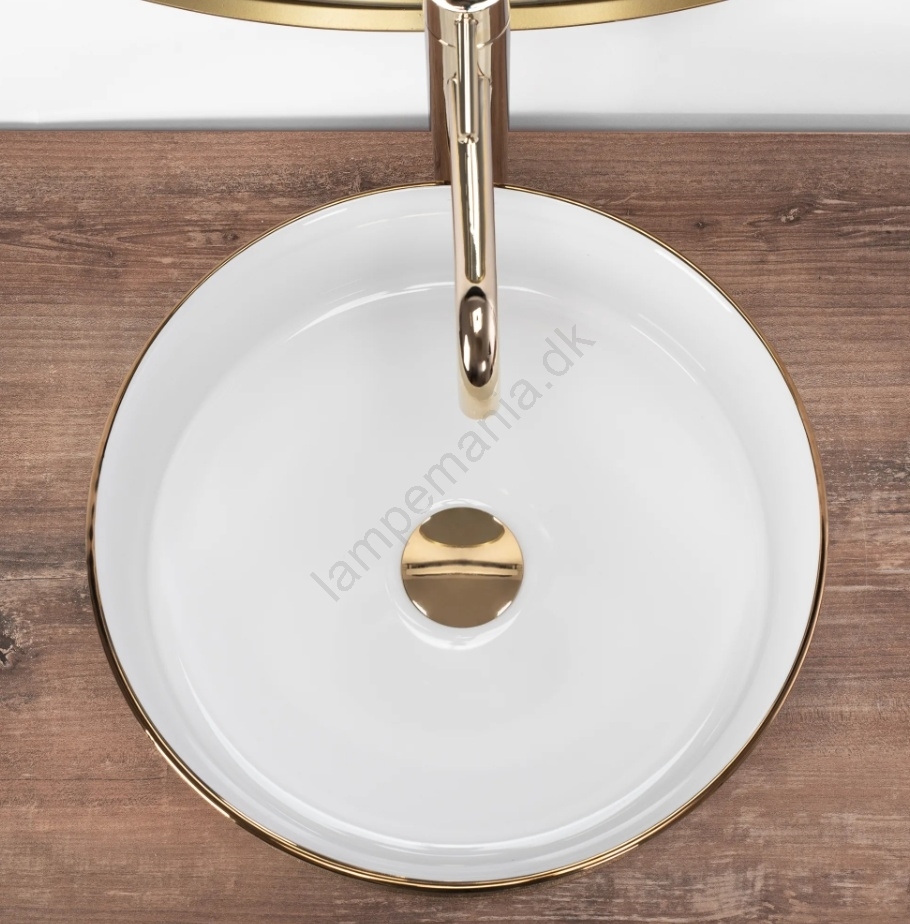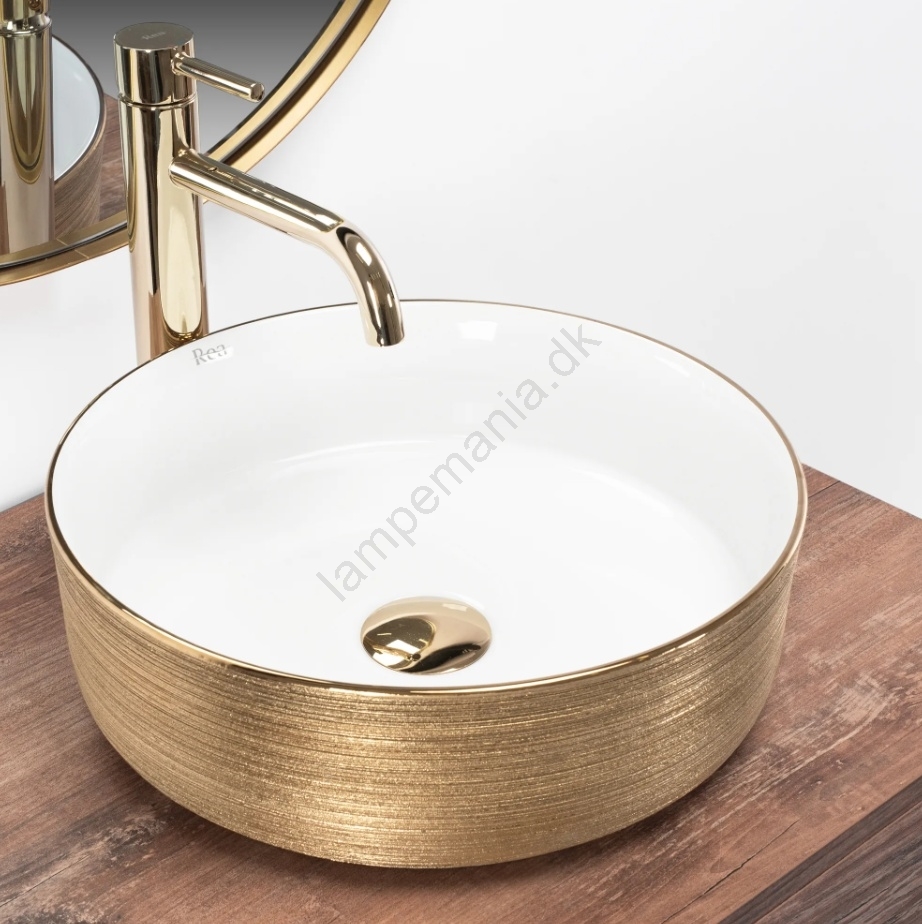 REA-U6630 - SAMI vask til bordplade Ø 36 cm keramisk/hvid/børstet guld