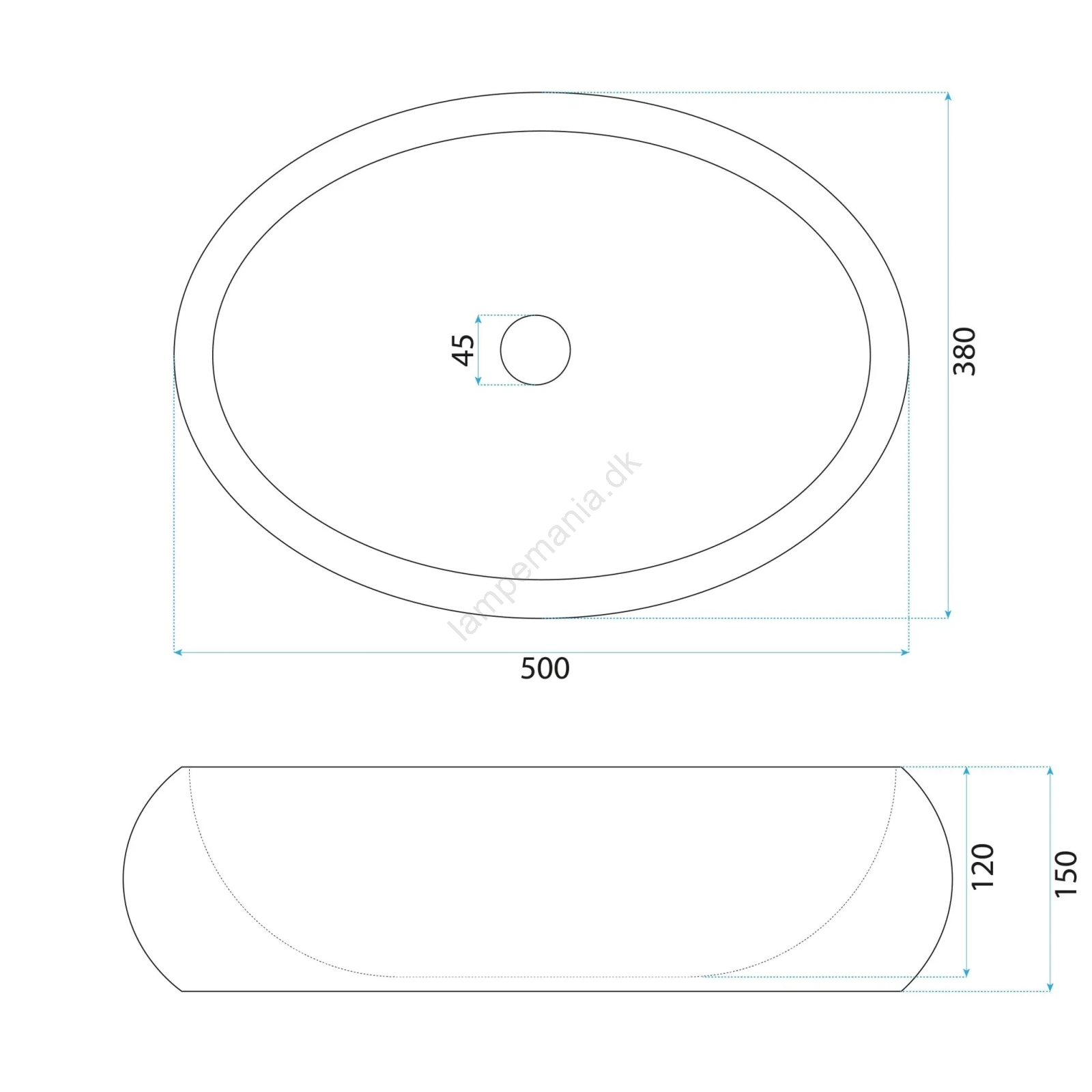 • Håndvaskarmatur og bundventil medfølger ikke.