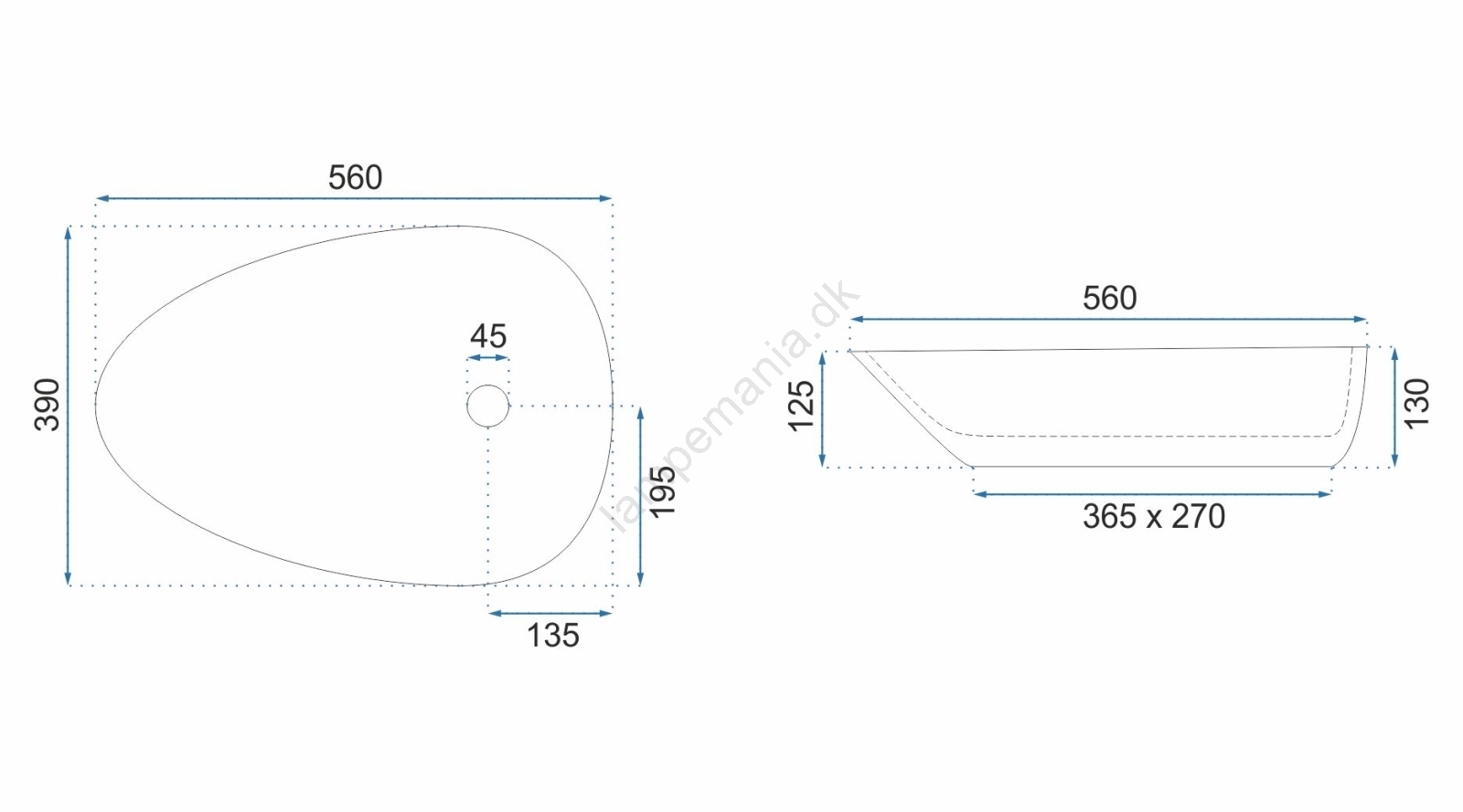 REA-U8536 - Håndvask til bordplade GRETA 39x56 cm keramik/højglans hvid