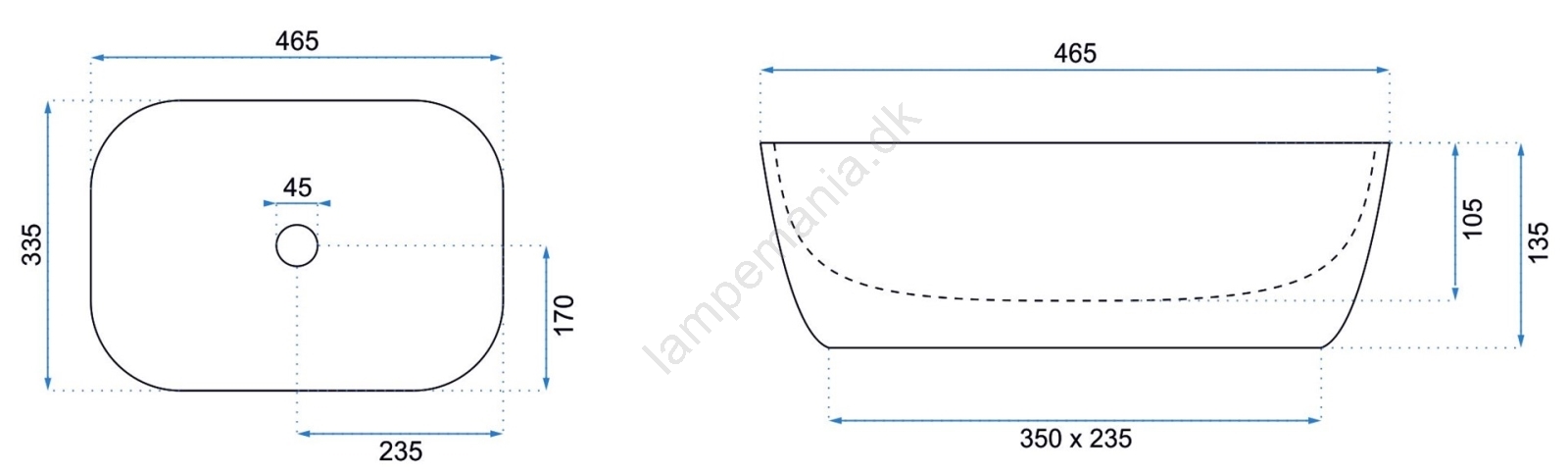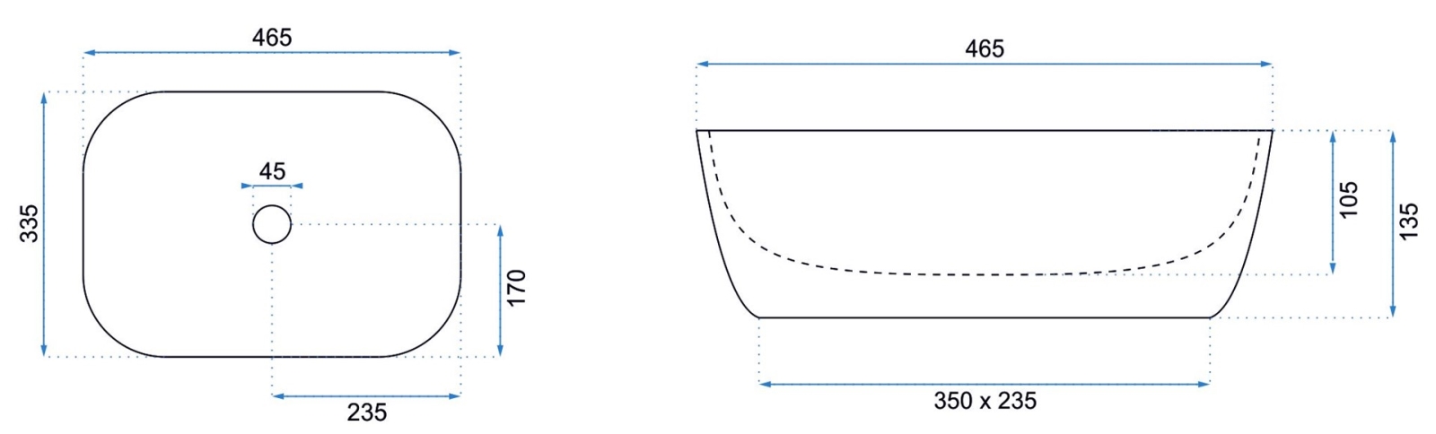 • REA-U6521 - Vask til bordplade BELINDA SLIM 33x46,5 cm keramik/højglans hvid