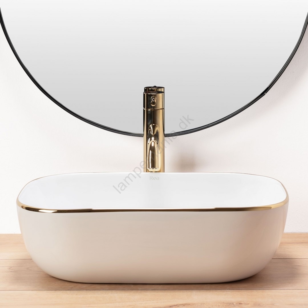 REA-U8736 - Håndvask til bordplade BELINDA 33,5x46,5 cm keramisk/hvid/guld