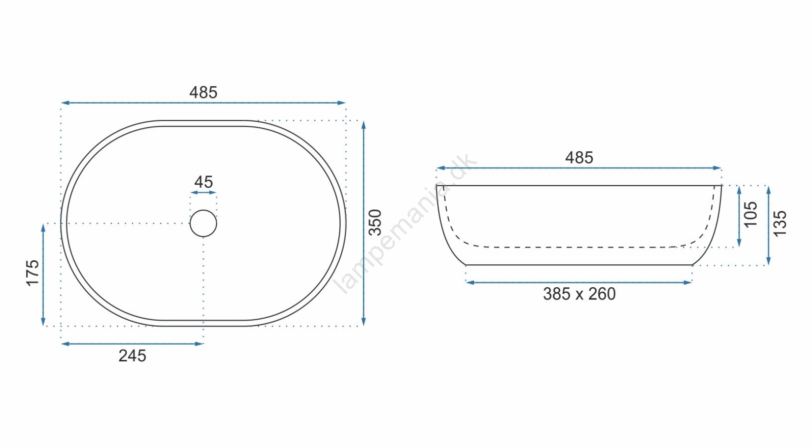 • Håndvaskarmatur og bundventil medfølger ikke.