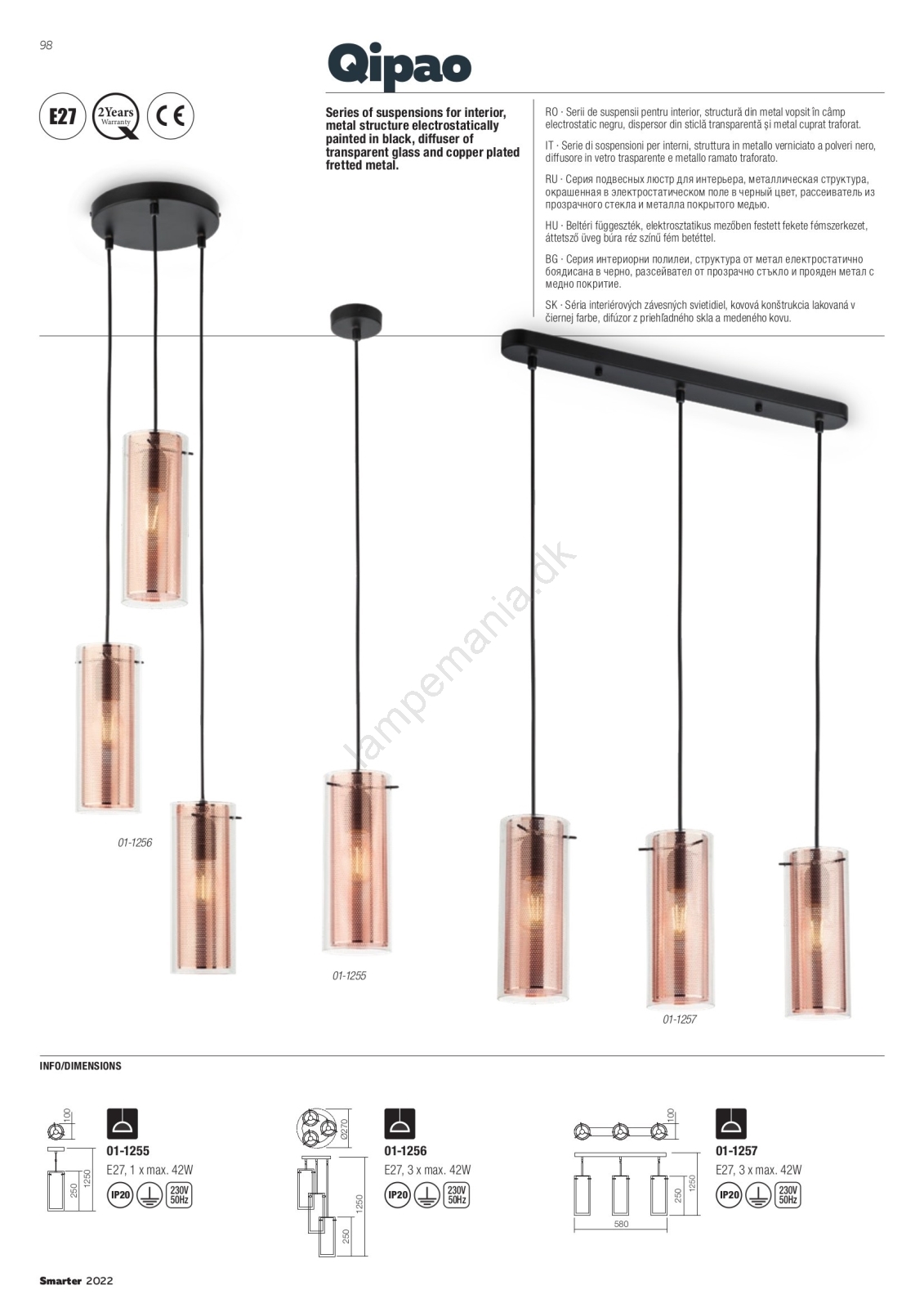 Redo 01-1257 - Pendel med kabel QIPAO 3xE27/42W/230V