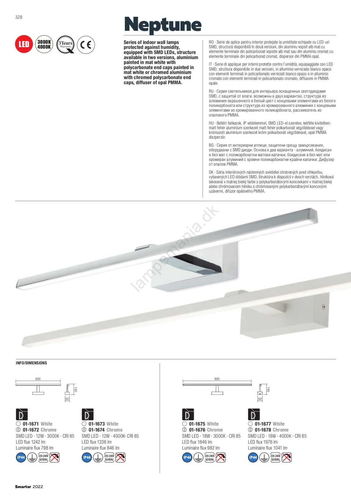 • Redo 01-1676 - NEPTUNE LED spejlarmatur til badeværelset, 18 W, 230 V, 89,5 cm, IP44, blank krom