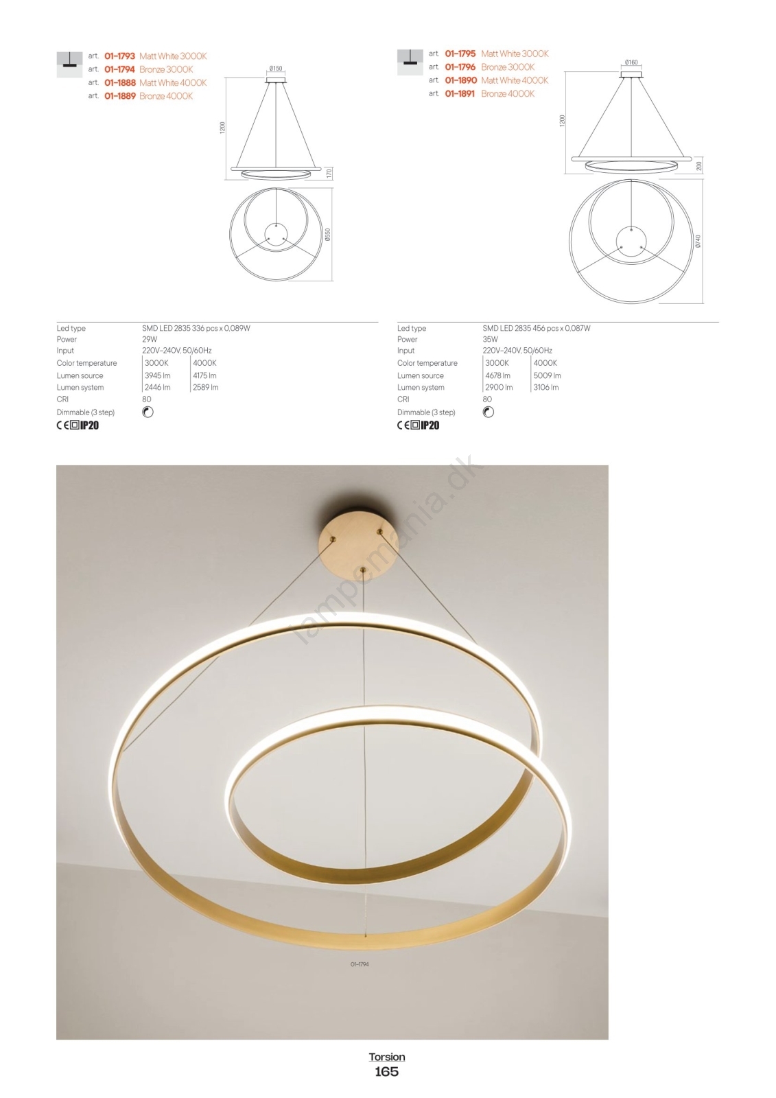 Redo 01-1790 - Dæmpbar LED-væglampe TORSION LED/27W/230V Ø 40 cm bronzefarvet