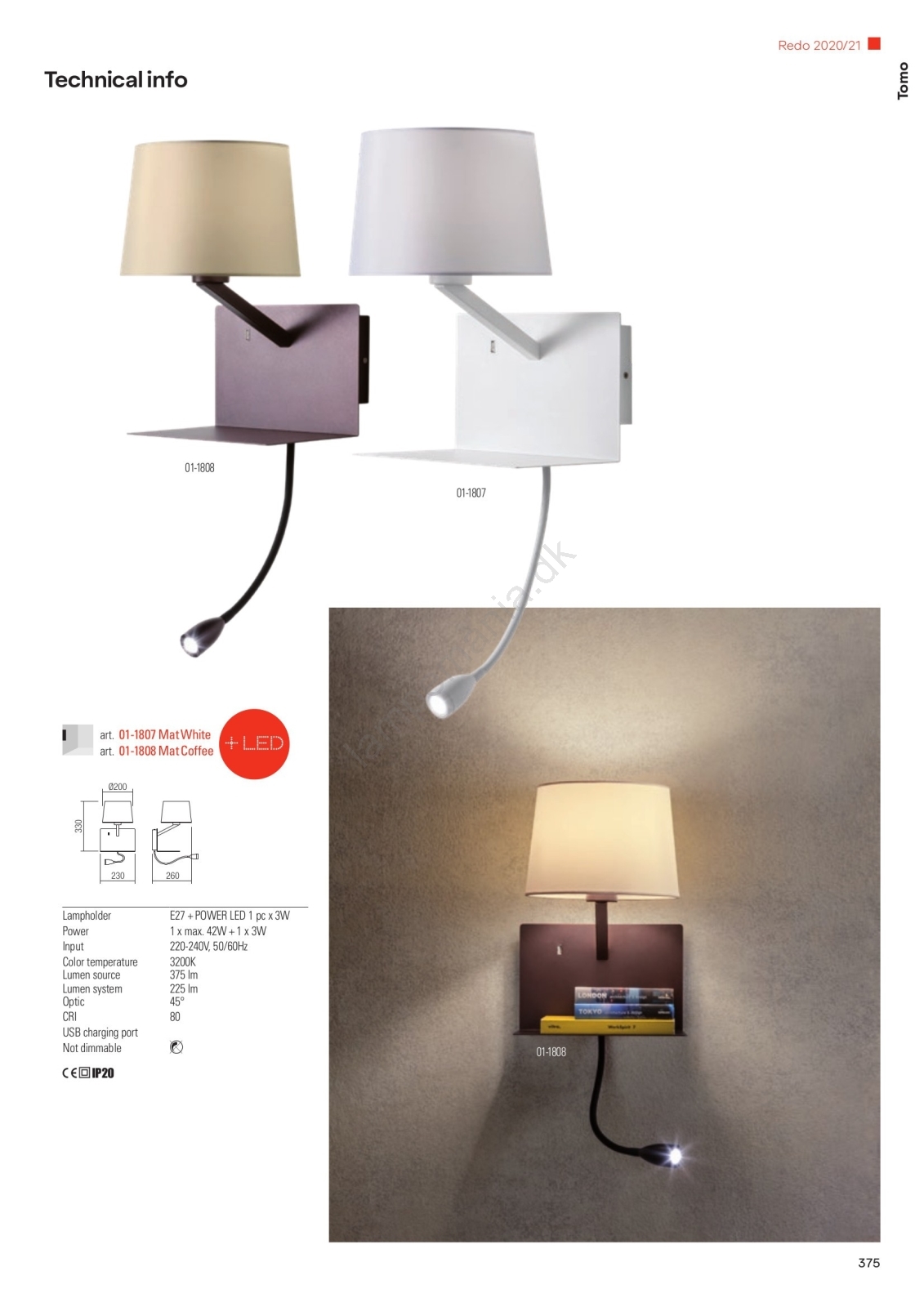 Redo 01-1807 - LED-væglampe med fleksibel læselampe TOMO 1xE27/42W/230V + LED/3W/230V hvid