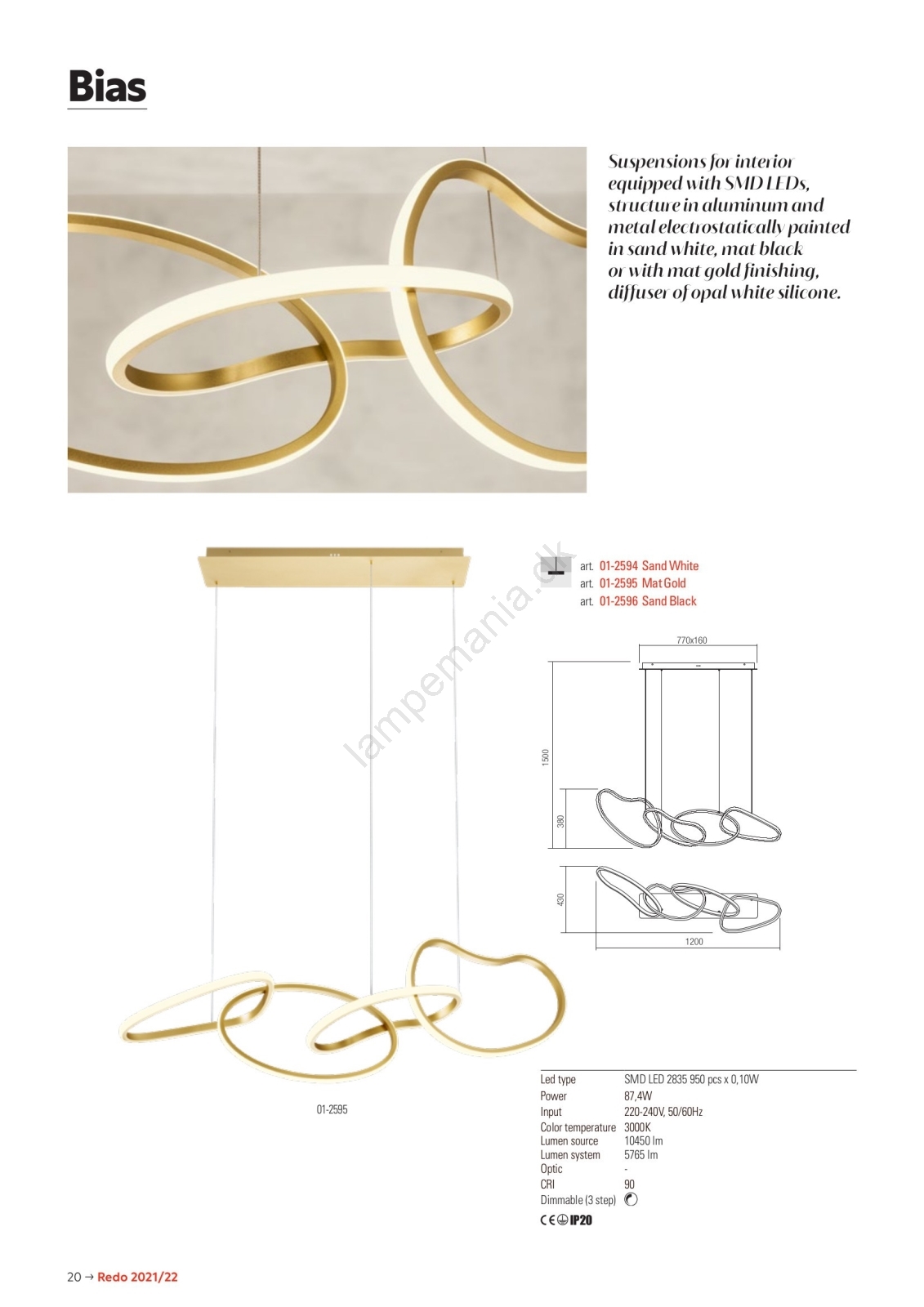 Redo 01-2594 - Dæmpbar LED-pendel på wire BIAS LED/87,4W/230V 3000K CRI 90 hvid