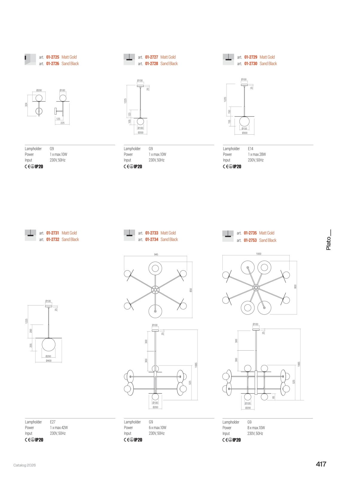• Redo 01-2753 - Lysekrone på stang PLATO 8xG9/10W/230V sort