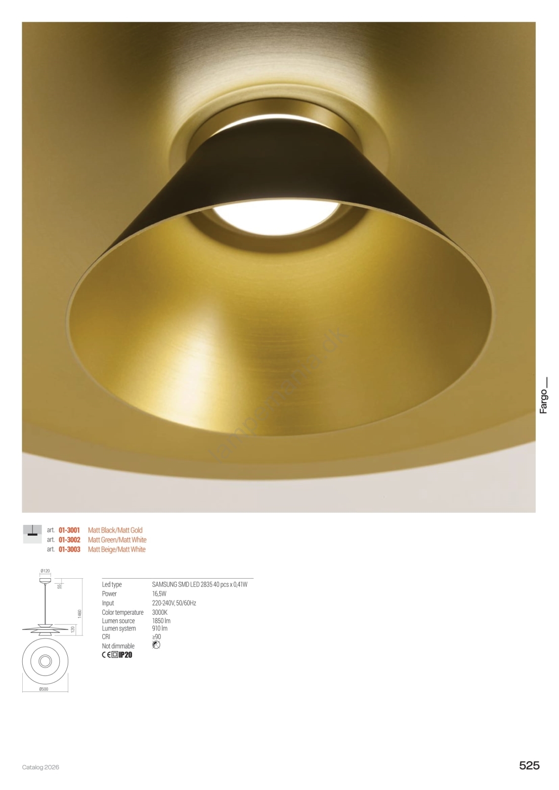 • Redo 01-3003 - LED-pendel på wire FARGO LED/16,5W/230V CRI 90 Ø 50 cm beige/hvid