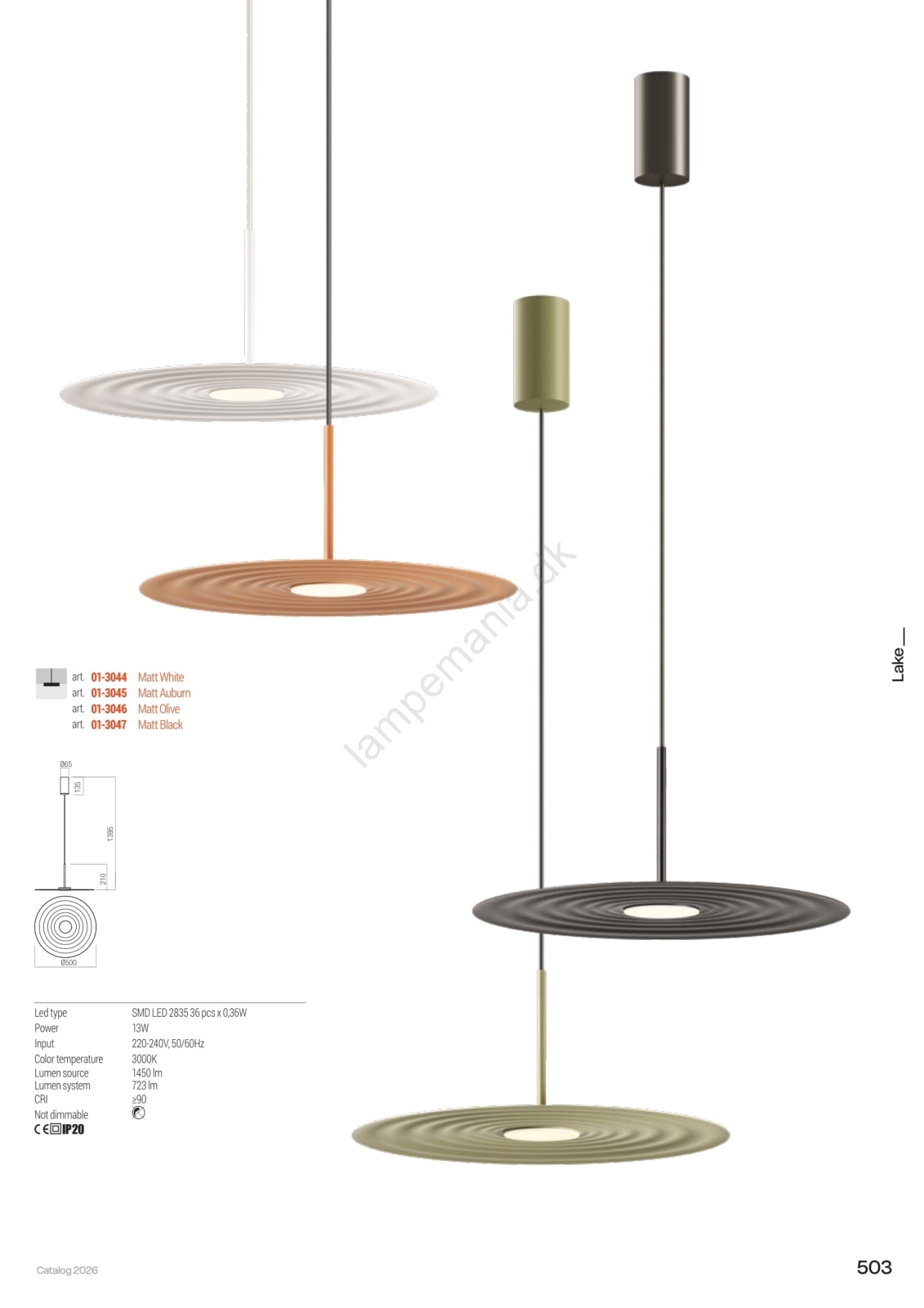 • Redo 01-3044 - LED-pendel med wireophæng LAKE LED/13W/230V CRI 90 Ø 50 cm hvid