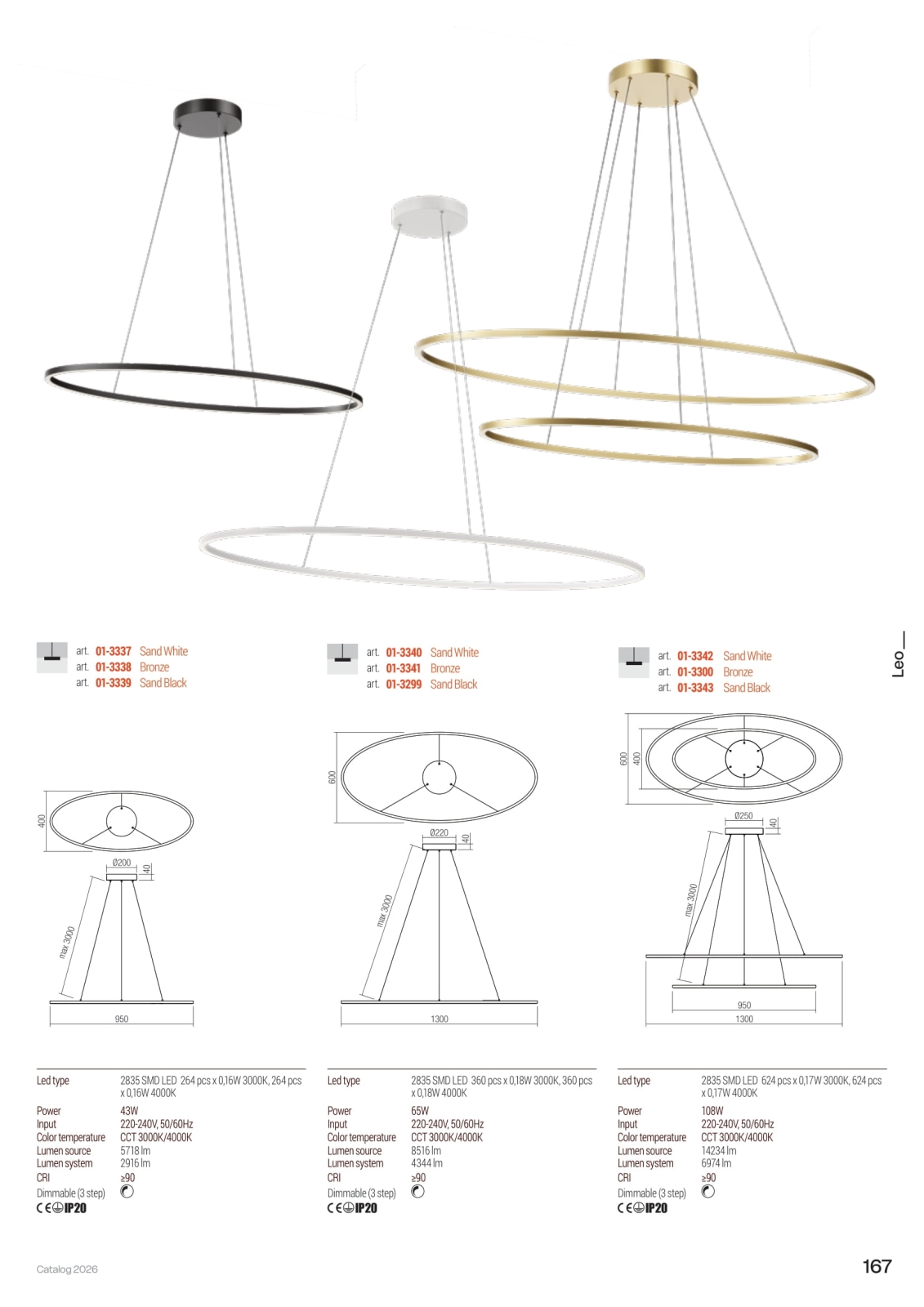 • Redo 01-3342 - LED dæmpbar pendel på kabel LEO LED/115W/230V 3000/4000K CRI 90 60x130 cm hvid