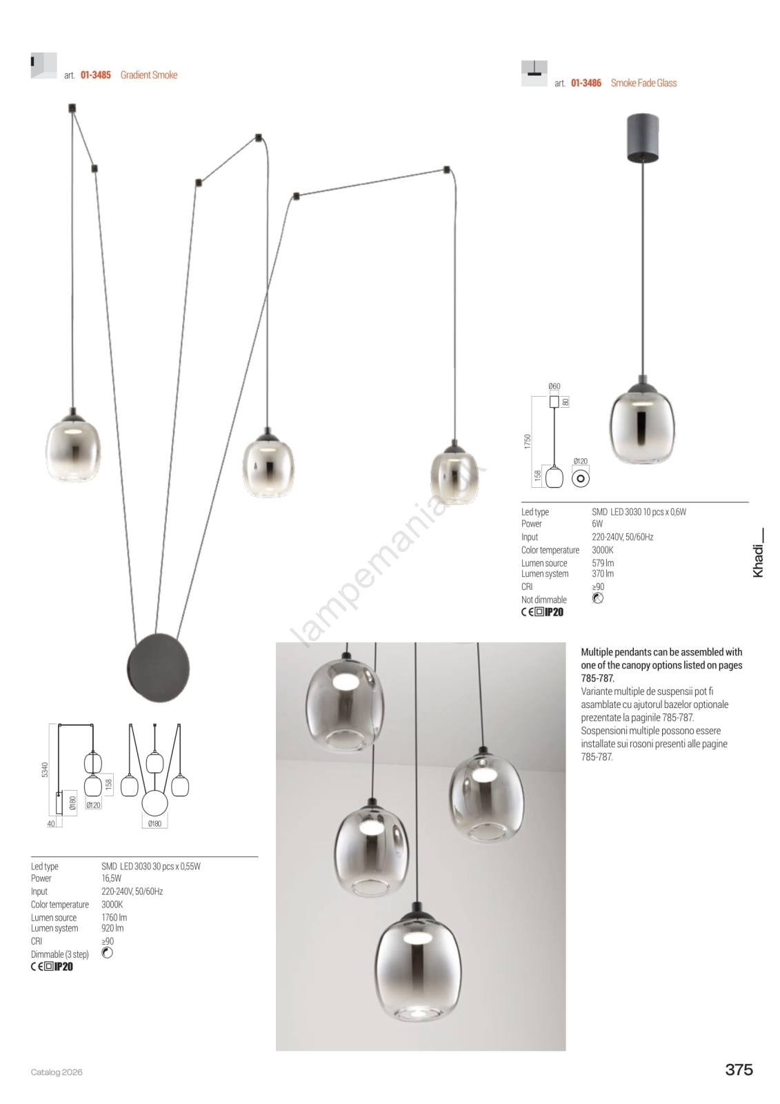 Redo 01-3486 - LED-pendel på kabel KHADI LED/6W/230V CRI 90 Ø 12 cm sort/røget