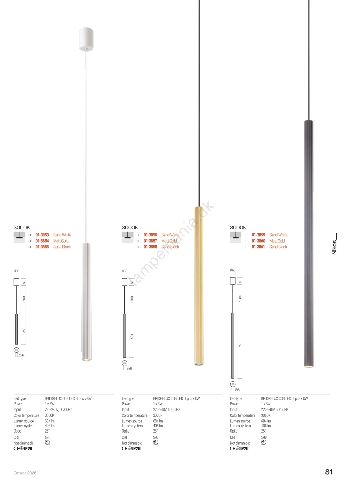 Redo 01-3861 - LED pendel på kabel NIKOS LED/8W/230V CRI 90 pr. 6 cm sort
