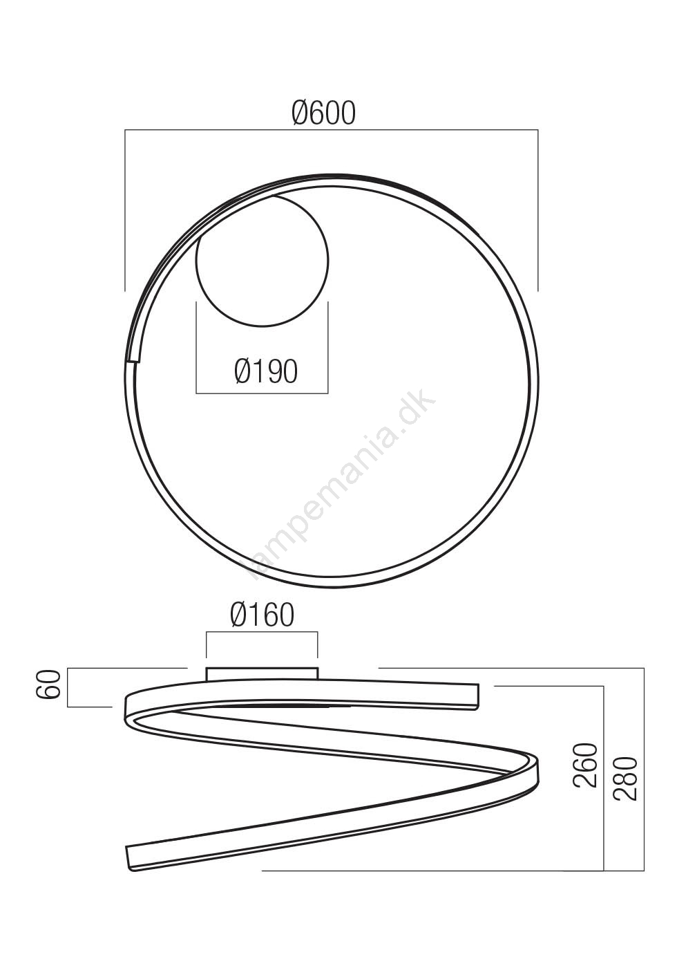 • Redo 01-4012 - Dæmpbar LED-loftlampe SCROLL LED/38W/230V 3000K/4000K/6000K CRI 90 Ø 60 cm sort