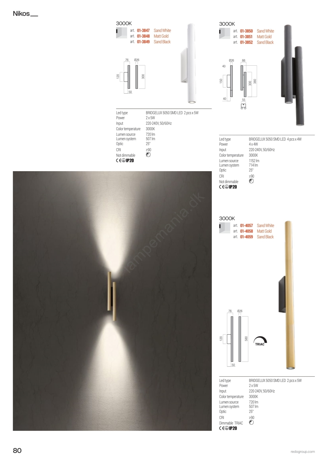 • Redo 01-4057 - Dæmpbar vægarmatur NIKOS LED/10W/230V 3000K CRI 90 hvid