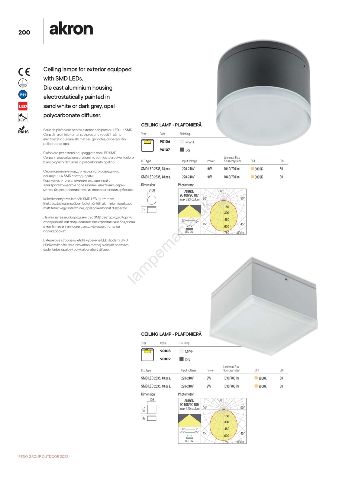 Redo 90107 - LED udendørs loftlampe AKRON LED/9W/230V Ø 10,8 cm IP54