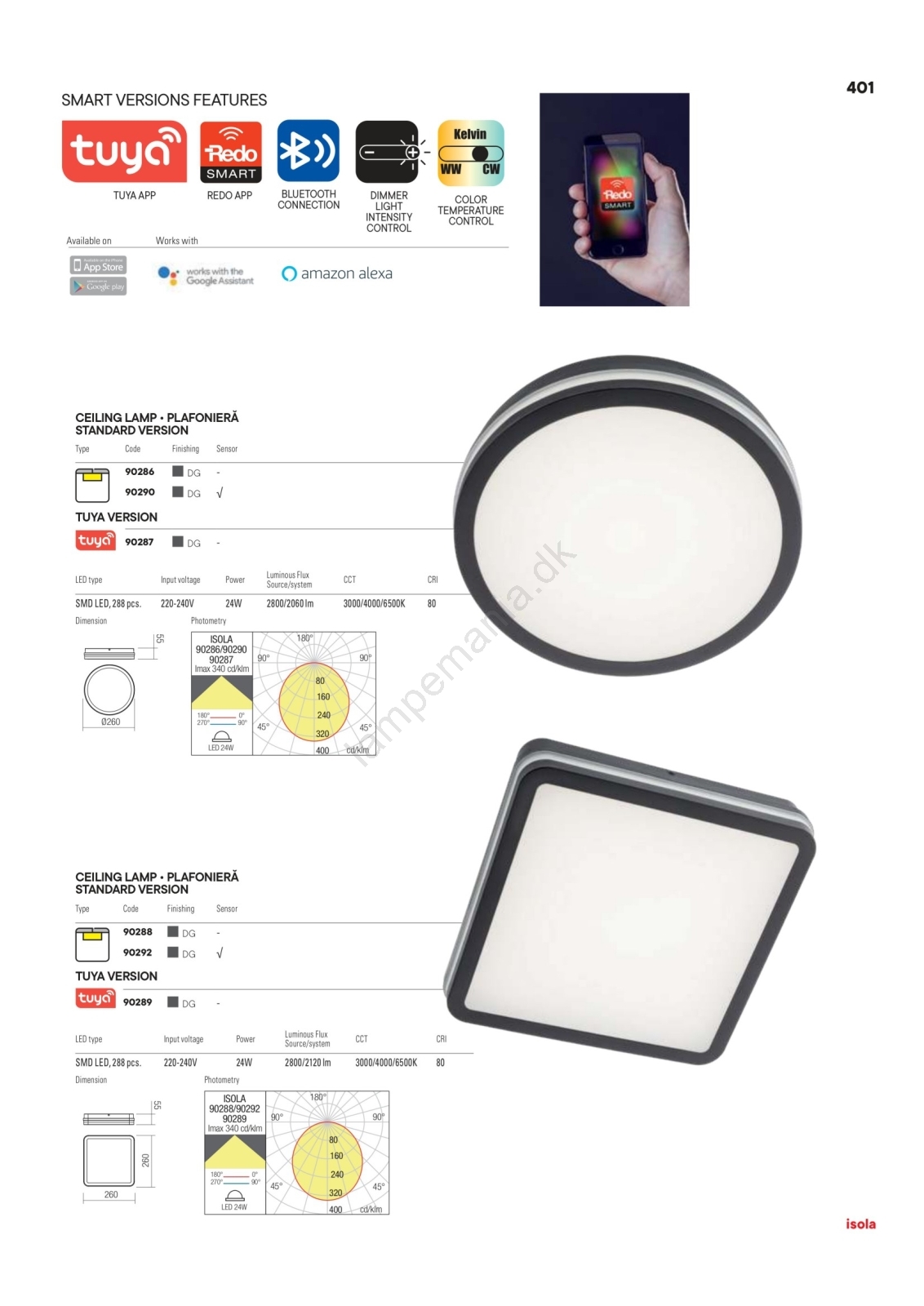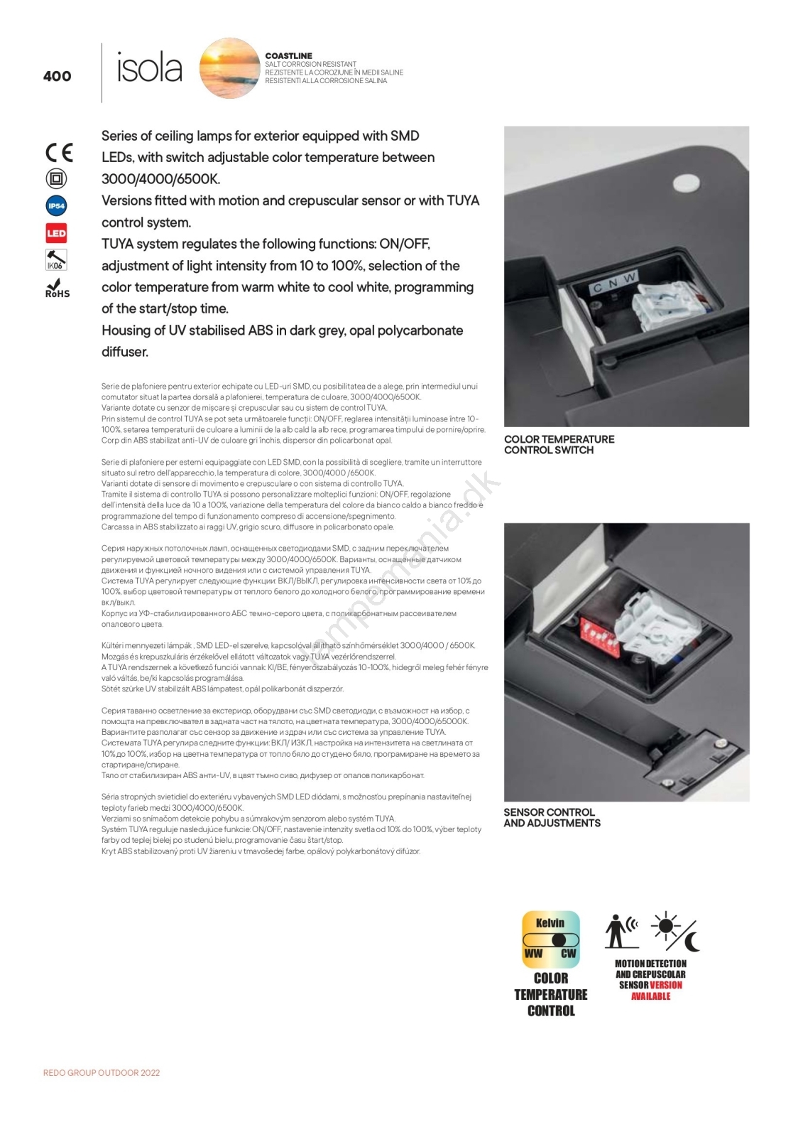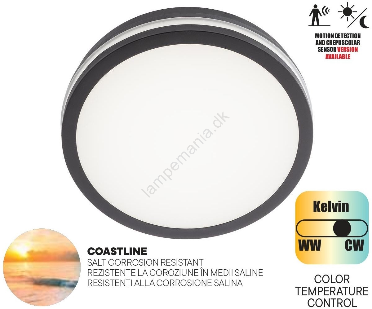 Redo 90290 - LED Udendørs loftlampe med sensor ISOLA LED/24W/230V Ø 26 cm 3000/4000/6500K IP54 antracit