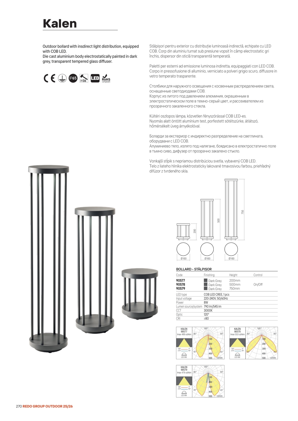 Redo 90579 - LED udendørslampe KALEN LED/8W/230V 3000K 75 cm IP65 antracit