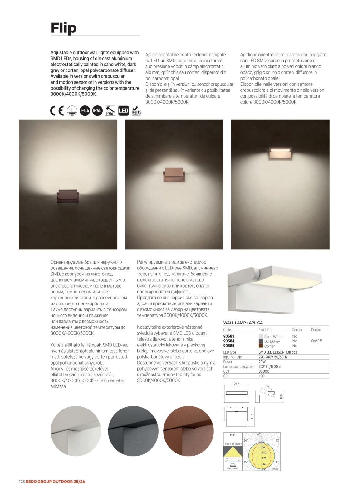 • Redo 90715 - LED udendørs væglampe FLIP LED/40W/230V 3000/4000/5000K CRI 90 IP54 antracit