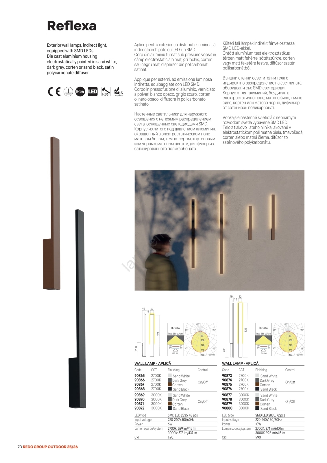 • Redo 90872 - LED udendørs vægarmatur REFLEXA LED/6W/230V 3000K 62,1 cm CRI 90 IP54 sort